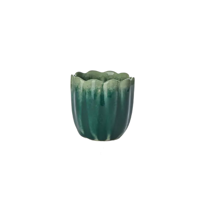 HULDA äggkopp i grön nyans kombinerar funktion med form i uttrycksfull design. Den vackra glasyren och den karakteristiskt vågiga kanten ger en naturlig känsla